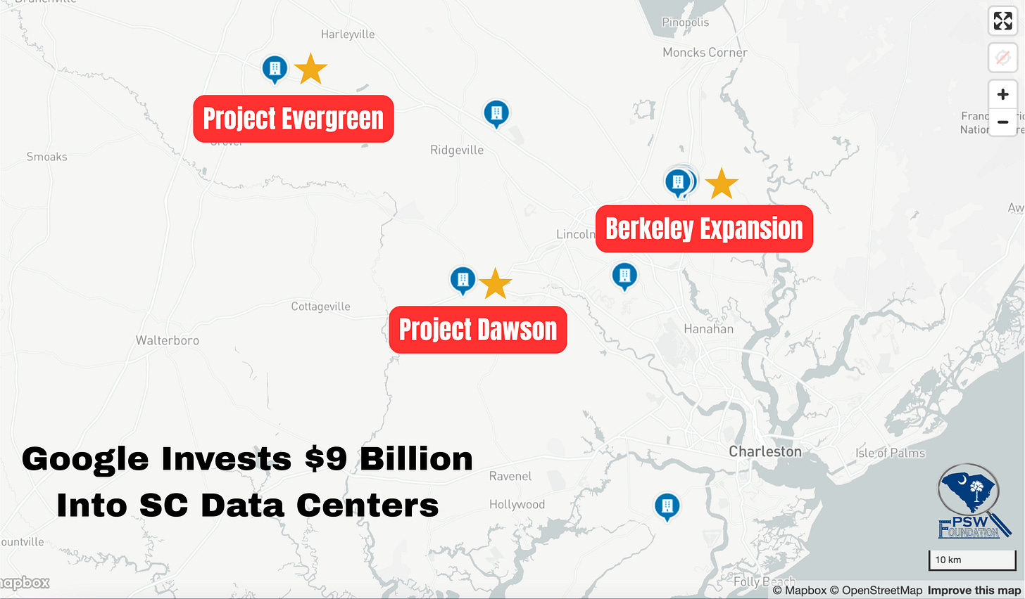 Google announced that it plans to invest $9 billion into South Carolina to expand its Berkeley County data center and build two new sites in Dorchester County. However, with the recent laws passed by the SC legislature and new information that has been released about data centers in the Palmetto State, it looks like its citizens will once again be subsidizing another globalist corporation.