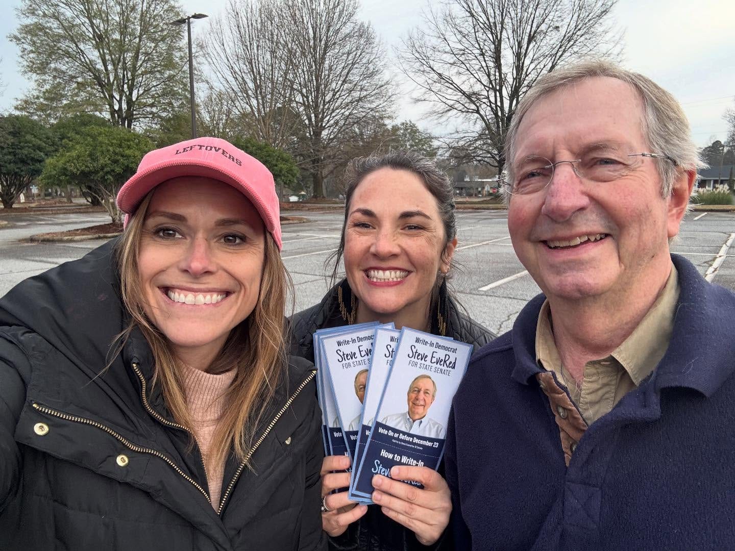Steve Evered (right) with Meghan Blanton Smith (middle) and democrat Kathryn Harvey (left) who was defeated in her run for Spartanburg County Council against incumbent Paul Abbott on November 4, 2025.
