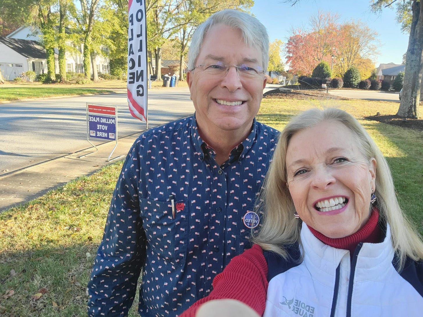 Dianne Mitchell and her husband, Todd, on the day of the runoff, November 4, 2025.