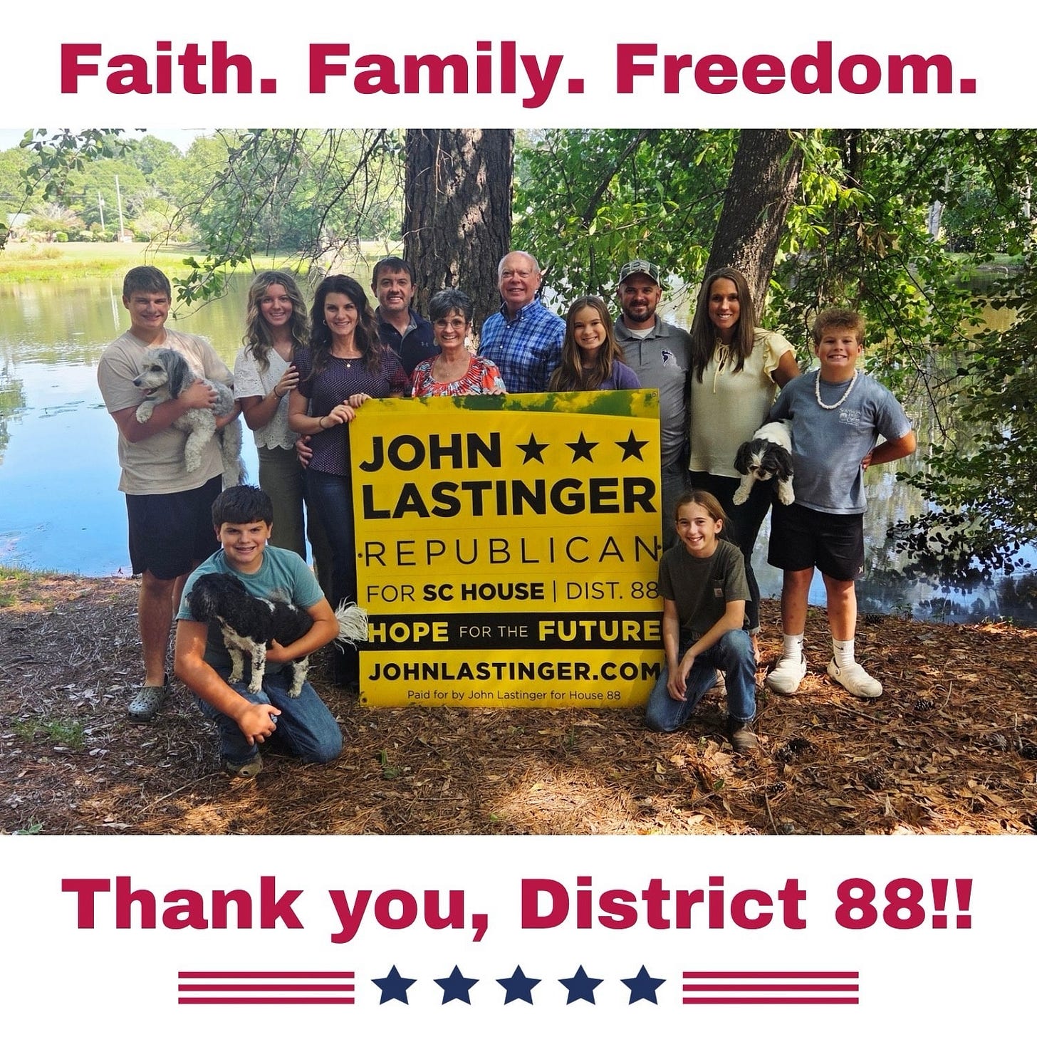 https://substack-post-media.s3.amazonaws.com/public/images/325ee546-0040-4050-8a0b-1ee9d361c43d_1500x1500.jpeg","srcNoWatermark":null,"fullscreen":null,"imageSize":null,"height":1456,"width":1456,"resizeWidth":null,"bytes":null,"alt":"May be an image of text that says 'Faith. Family. Freedom. JOHN LASTINGER REPUBLICAN FOR SC HOUSE| DIST. FORSCHOUSE|DIST.88 88 SHOPE FUTURE JOHNLASTINGER.COI rHouse88 Thank you, District 88!!'","title":null,"type":null,"href":"https://www.facebook.com/share/p/1BpXVSADnb/","belowTheFold":true,"topImage":false,"internalRedirect":null,"isProcessing":false,"align":null,"offset":false}" alt="May be an image of text that says 'Faith. Family. Freedom. JOHN LASTINGER REPUBLICAN FOR SC HOUSE| DIST. FORSCHOUSE|DIST.88 88 SHOPE FUTURE JOHNLASTINGER.COI rHouse88 Thank you, District 88!!'" />