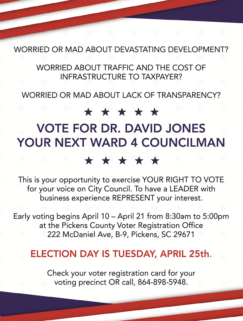 Dr. David Jones For Ward 4 Councilman in Easley, SC
